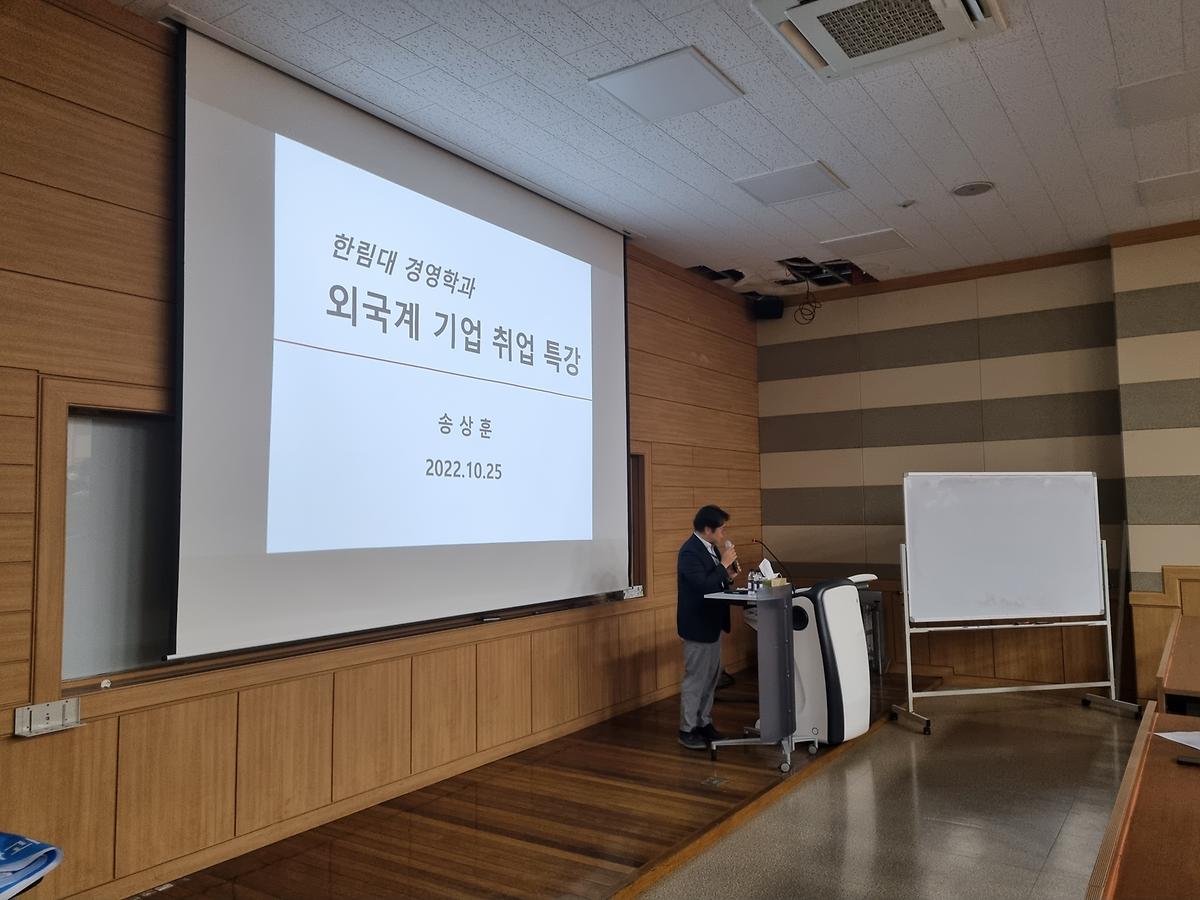 이번 특강에서는 한국기업과 외국기업의 차이에 대해 설명하였습니다. 조직계의 차이와 기업에서 요구하는 신입직원 능력 혹은 기업문화 차이 등을 자세하게 배워, 외국계 기업 취업을 희망하는 학생들에게 정보를 제공하였습니다. 또한 코로나19 유행 이후의 언택트 시대와 포스트 코로나, 위드 코로나 시대의 기업 채용 현황에 대하여 학생들이 취업을 준비할 때 필요한 내용을 중점적으로 특강을 진행하였습니다.