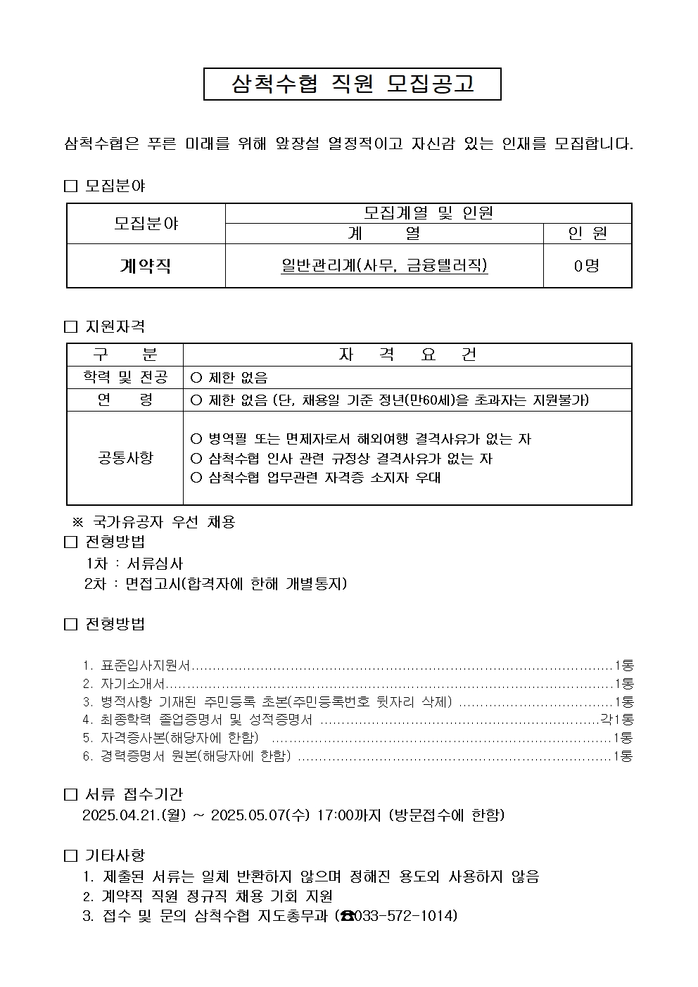 [삼척시] 삼척수협 직원(계약직_일반 관리계) 모집 공고