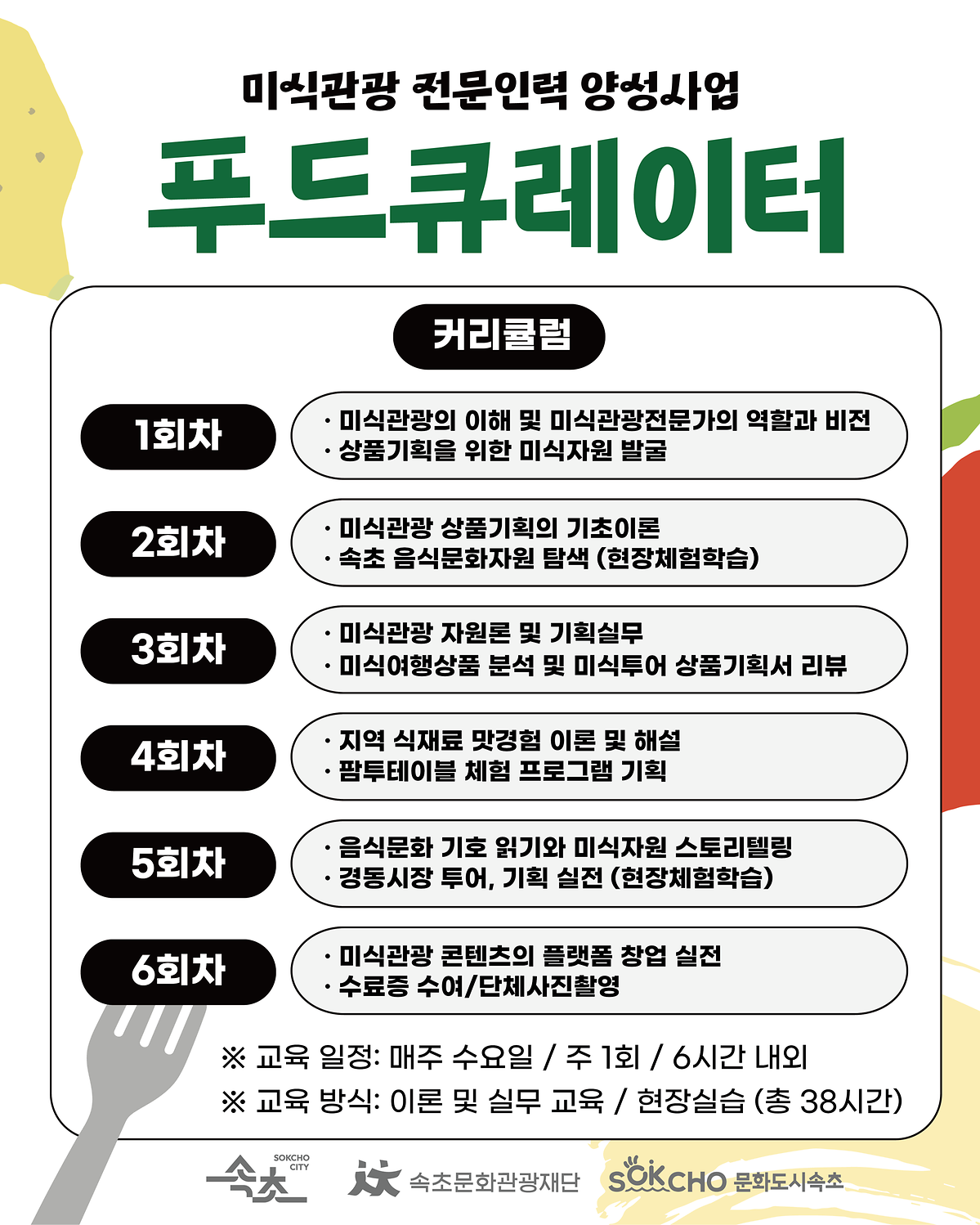 [속초시] 2025 미식관광 전문인력 양성사업 - 푸드큐레이터 교육생 모집