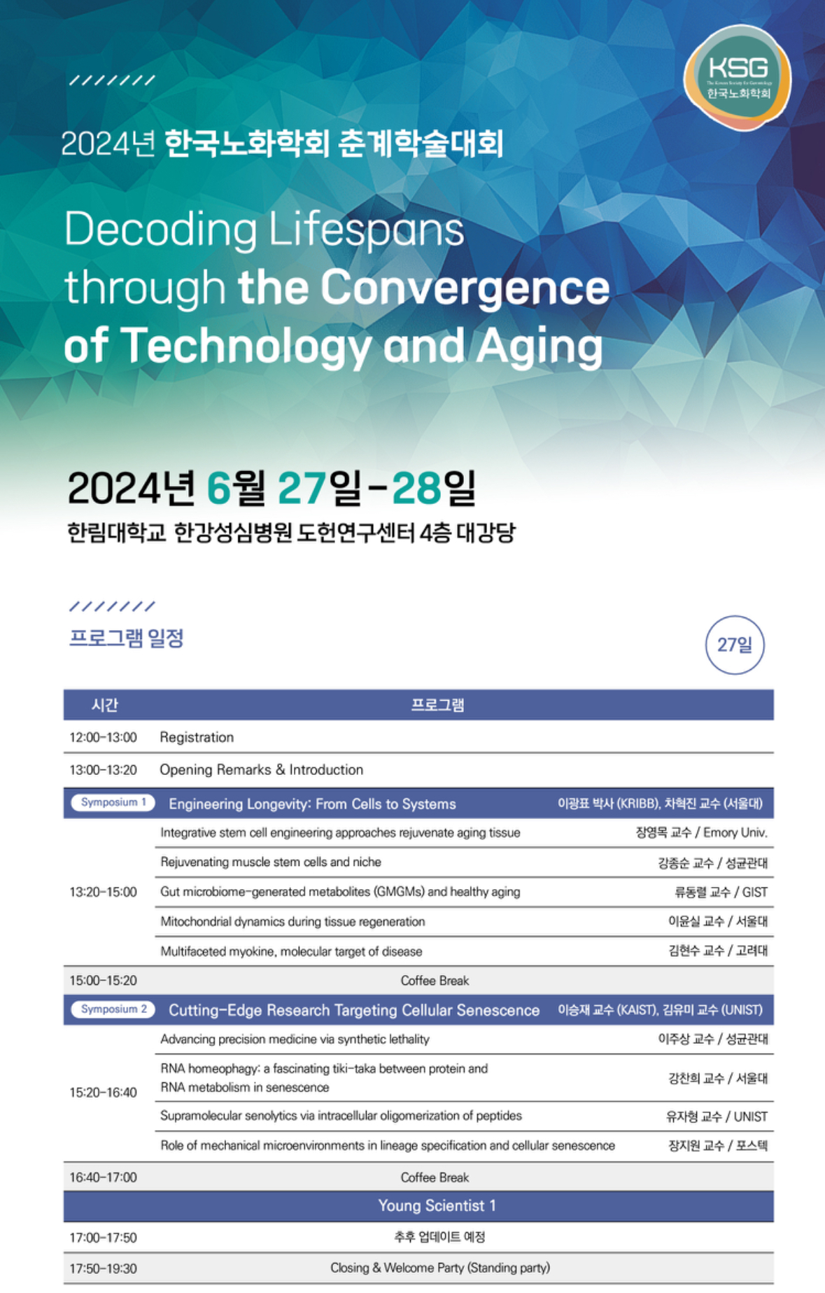 2024년도 한국노화학회 춘계학술대회 개최 안내
