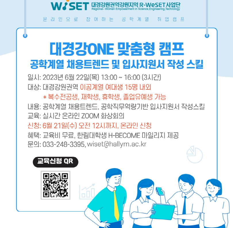 문의: 033-248-3395, wiset@hallym.ac.kr (한림대학교 대경강원권역강원지역R-WeSET사업단)