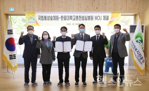한림대학교춘천성심병원(병원장 이재준)은 23일 국립횡성숲체원(원장 홍성현)과 ‘급성기 뇌졸중 환자의 기능적 회복을 위한 숲체험치료 효과 규명 및 산림자원 활용기술 개발’을 위한 업무협약을 체결했다.