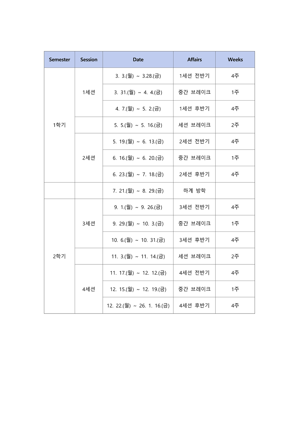 * 자세한 학사일정은 붙임파일 참조 부탁드립니다.