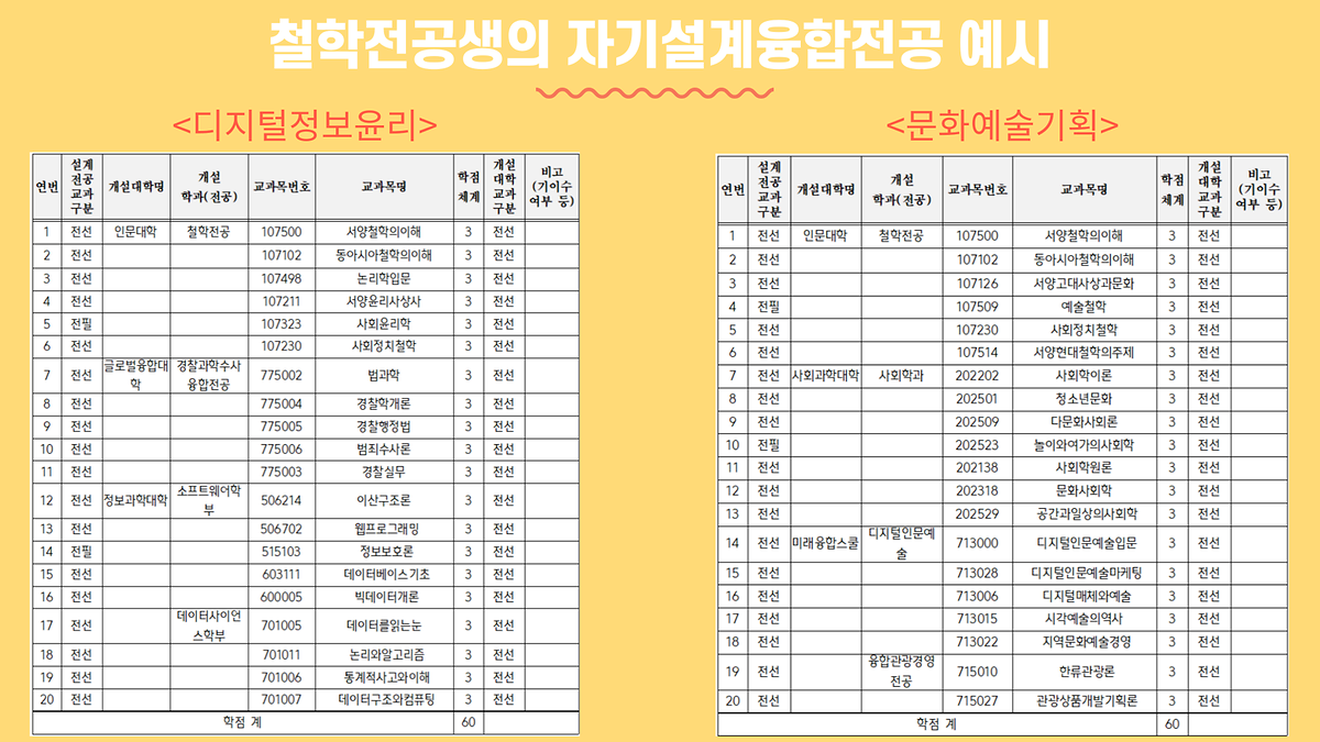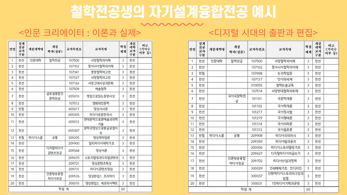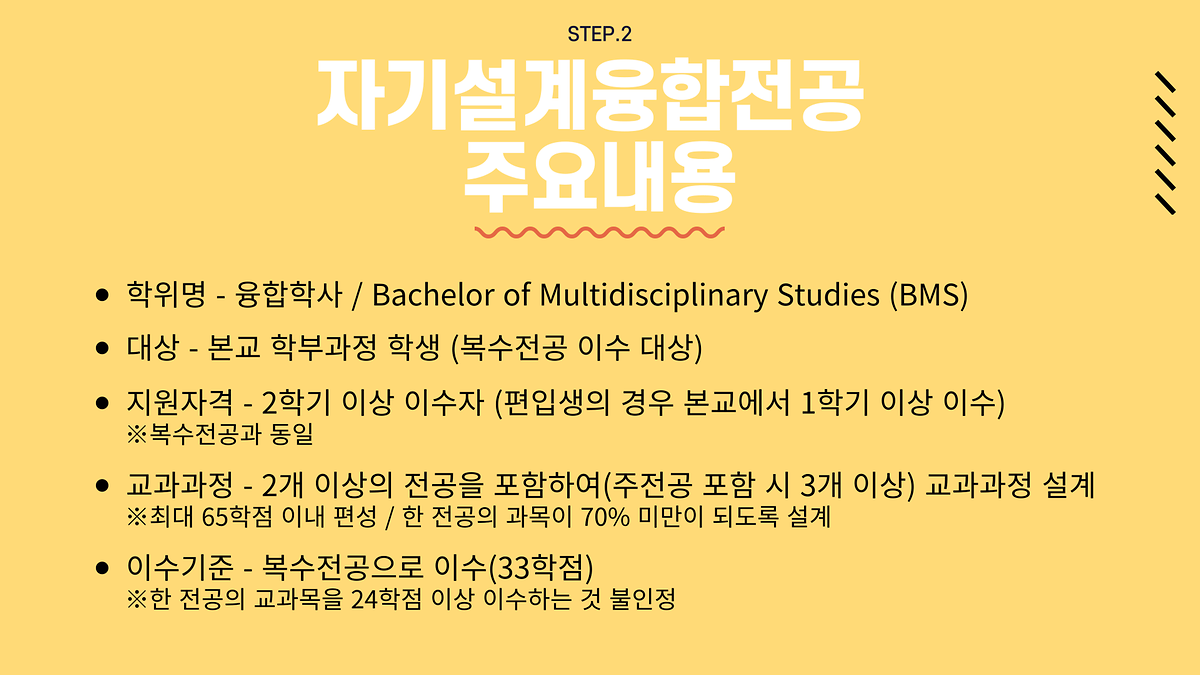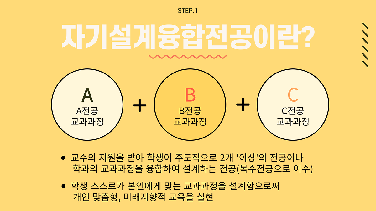 자기설계융합전공은 교수의 지원을 받아 학생이 주도적으로 2개 '이상'의 전공이나 학과의 교과과정을 융합하여 설계하는 전공입니다.