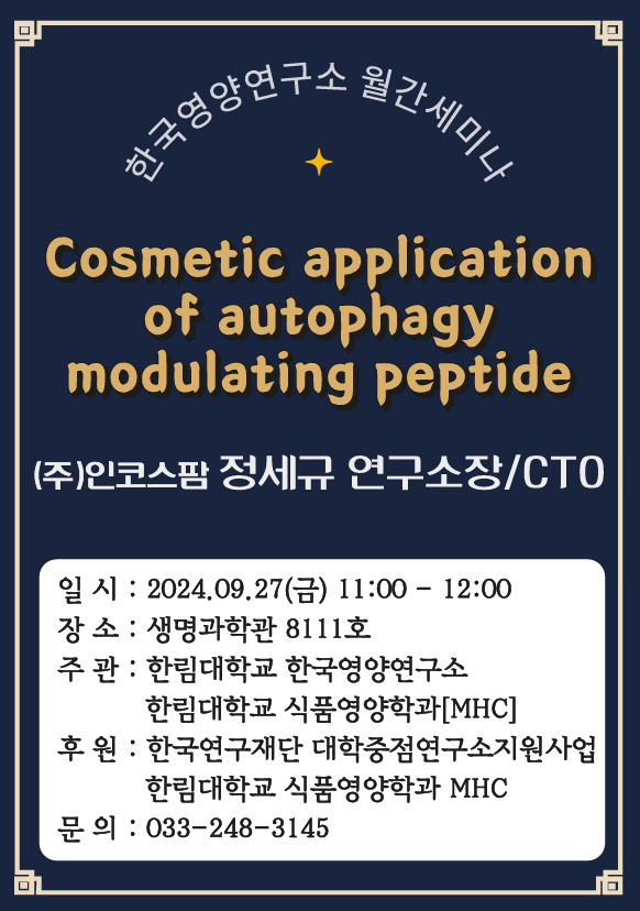 [한국영양연구소] 9월 월간세미나 안내(9월 27일/금)