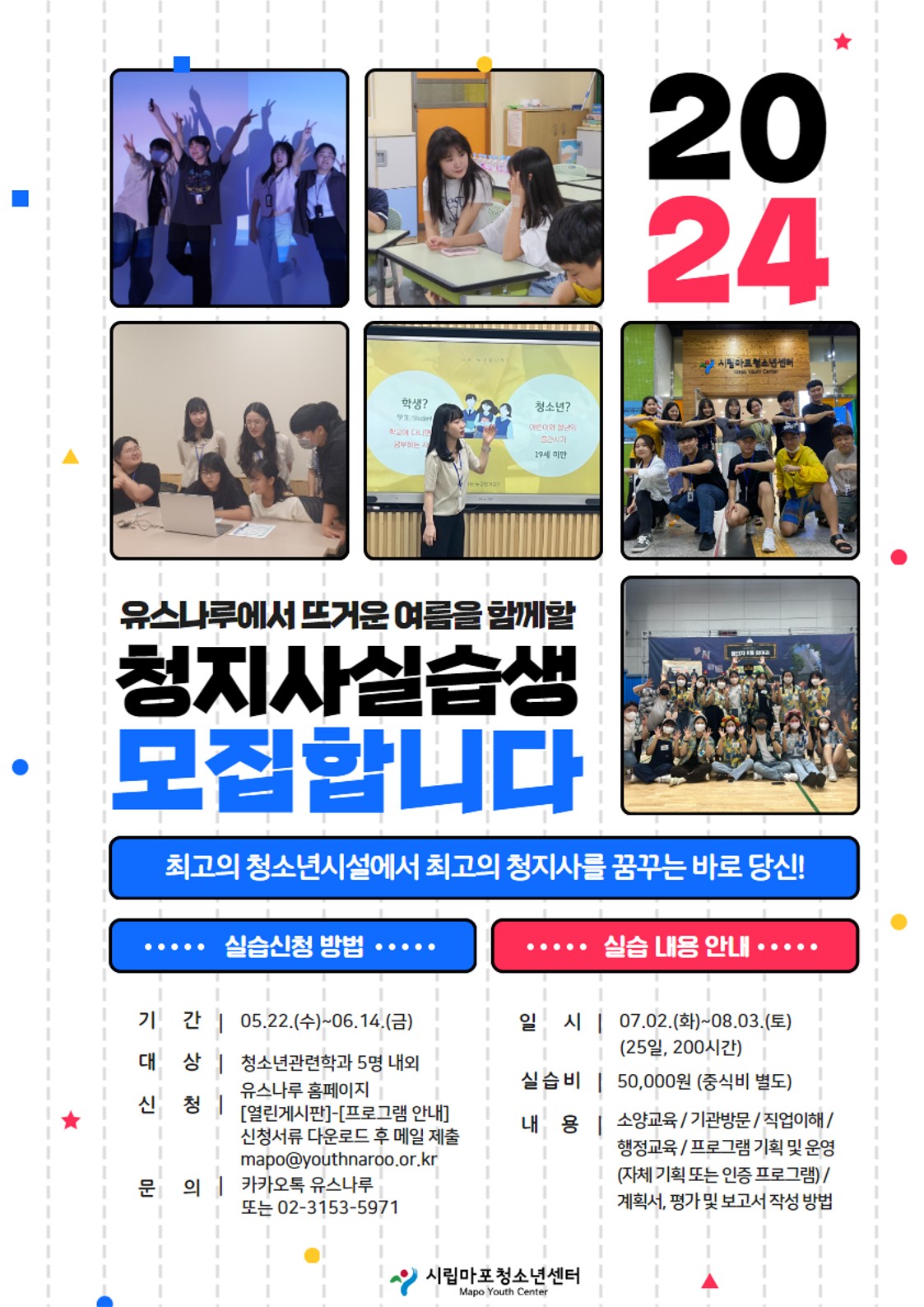 [시립마포청소년센터] 2024년 하계방학 청소년지도실습생 모집 안내