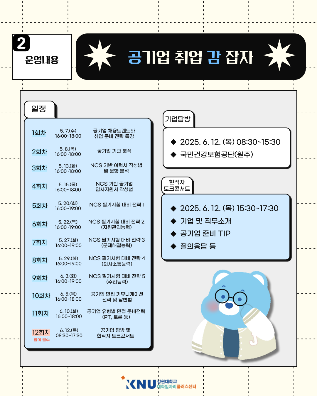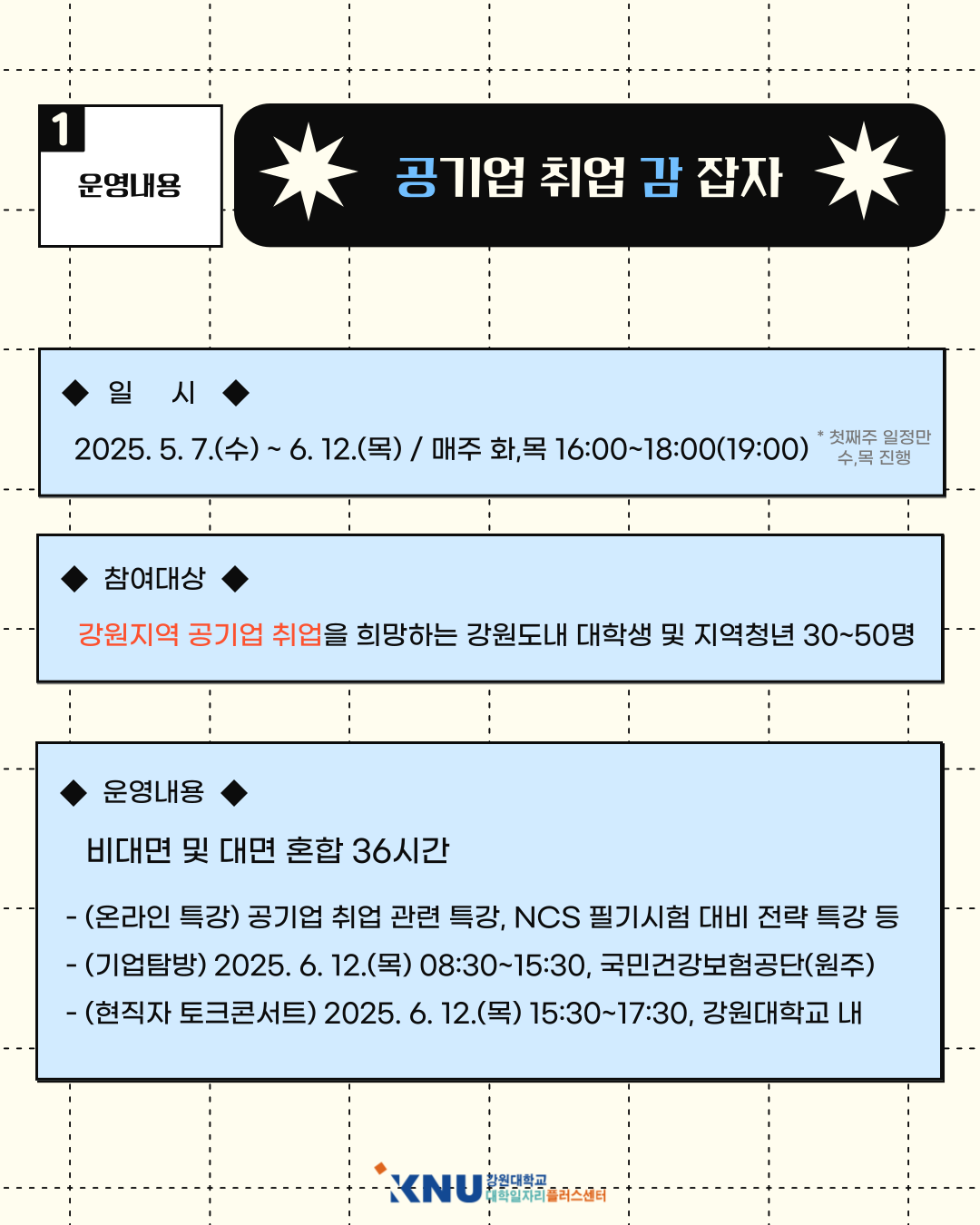 - (현직자 토크콘서트) 2025.6.12.(목) 15:30~17:30, 강원대학교 내