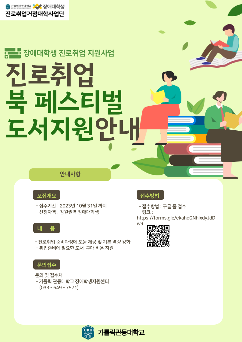 2023학년도 「장애대학생 진로취업 지원 사업」 진로취업 북 페스티벌 도서지원 프로그램 참여 안내