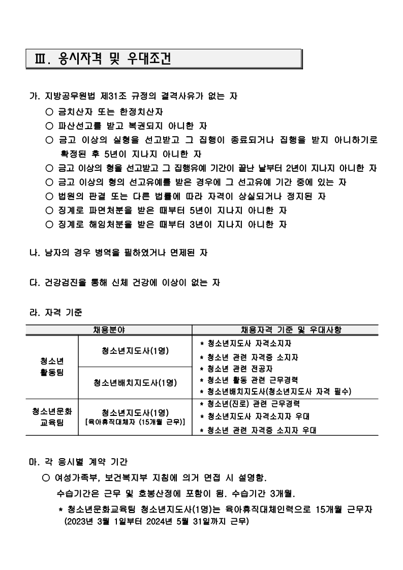 2023년 홍천군청소년수련관 실무자 공개채용 공고